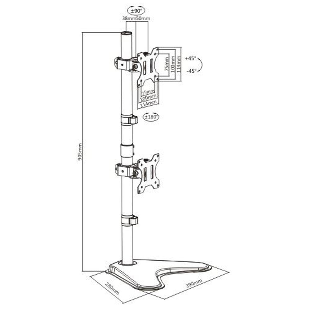The mounts can also be individually swivelled, tilted or rotated to face any desired direction. This gives you endless possibilities in a professional workplace. Next time you're demonstrating or presenting something at your workstation but you only want the audience to see one screen, simply turn one monitor towards them to leave you free to control everything whilst retaining a professional display. Another option is to use the mount as a central podium for two workstations. You can simply mount two monitors to the mount and have them facing opposite directions so you can share a desk whilst maintaining a bit of privacy with what you're working on.