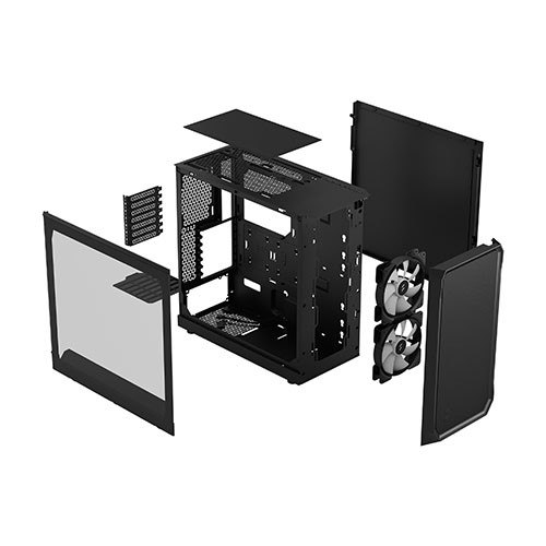 Fractal Design Focus 2 RGB (Black TG) Gaming Case w/ Clear Glass Window, ATX, 2 RGB Fans, RGB controller, Mesh Front, Innovative