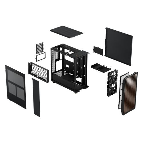 Fractal Design North Charcoal Black (Black Solid) Case, ATX, Fine Mesh Side, 2 Fans, USB-C, Walnut Front