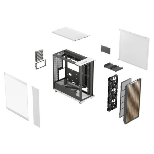 Fractal Design North XL Chalk White (TG Clear) Case w/ Clear Glass Window, E-ATX, 3 PWM Fans, USB-C, Oak Front
