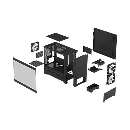 Fractal Design Pop Mini Air RGB (Black TG) Gaming Case w/ Clear Glass Window, Micro ATX, Hexagonal Mesh Front, 3 RGB Fans & ARGB