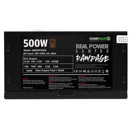 GameMax 500W RPG Rampage PSU, Fully Wired, 80+ Bronze, Flat Black Cables, Power Lead Not Included