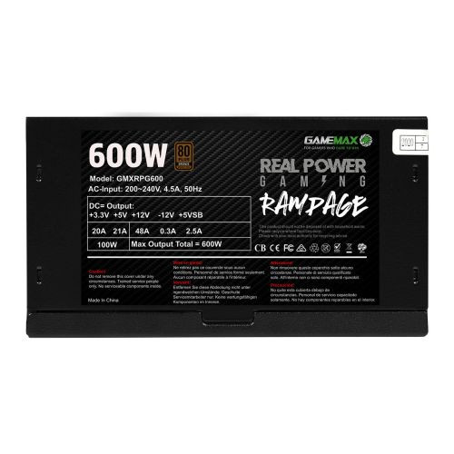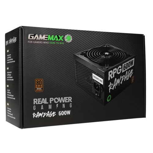 GameMax 600W RPG Rampage PSU, Fully Wired, 80+ Bronze, Flat Black Cables, Power Lead Not Included
