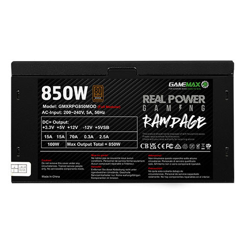 GameMax 850W RPG Rampage Fully Modular PSU, 80+ Bronze, Flat Black Cables, Power Lead Not Included