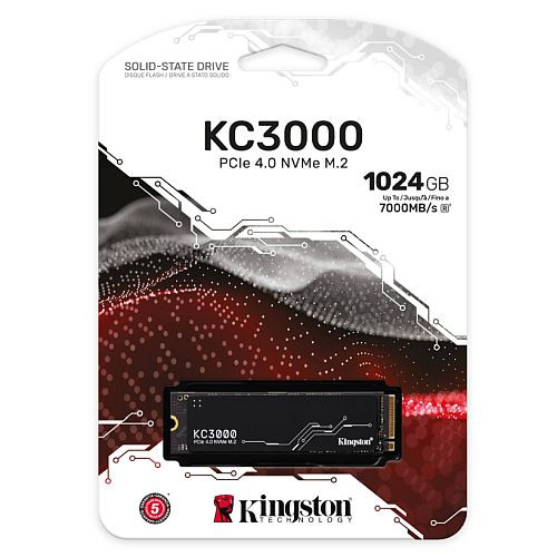 Kingston 1TB KC3000 M.2 NVMe SSD, M.2 2280, PCIe4, 3D TLC NAND, R/W 7000/6000 MB/s, 900K/1M IOPS, Aluminium Heatspreader