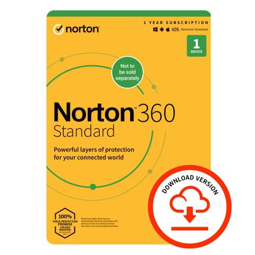 Norton 360 Standard 10x 1 Device, 1 Year ESDs - Ten 1 Device Licences via email - 10GB Cloud Storage - PC, Mac, iOS & Android *N
