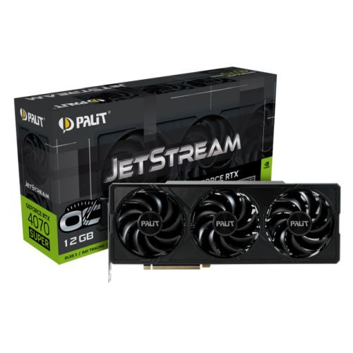 The GeForce RTX™ 4070 SUPER JetStream OC fashioned in jet-black with geometric block patterns demonstrates a performance-focused design that remains the essences to achieve any gaming and media application. Its stealthy approach intends to suit users who prefer function over form, or fancy to keep their PCs in dark presence.