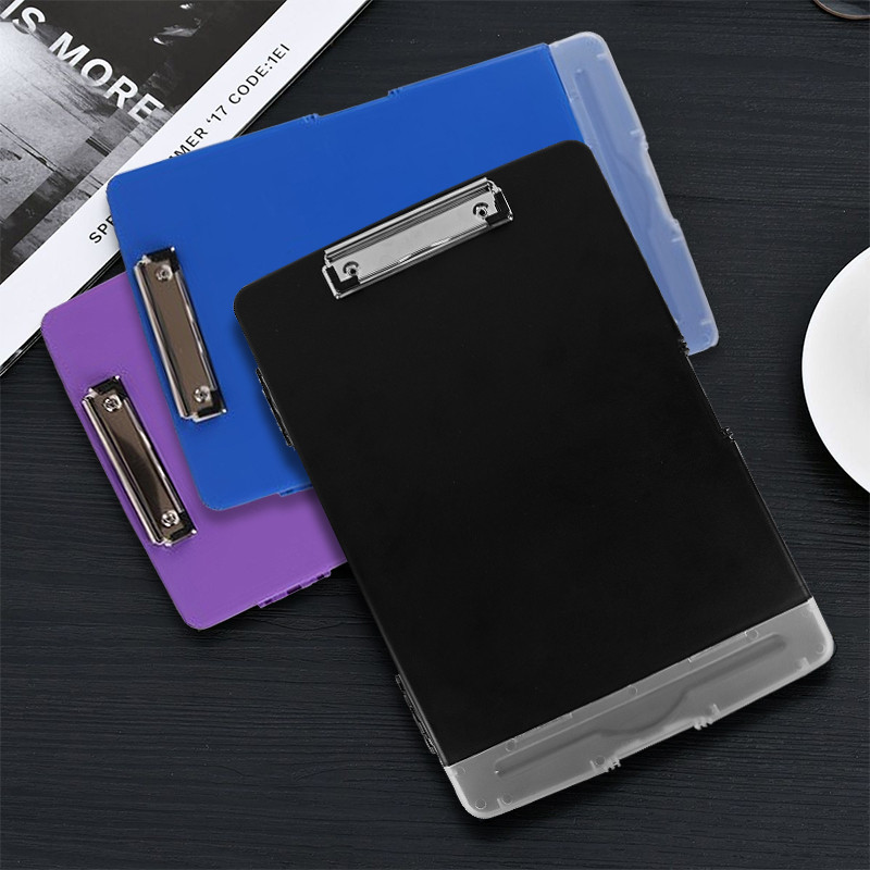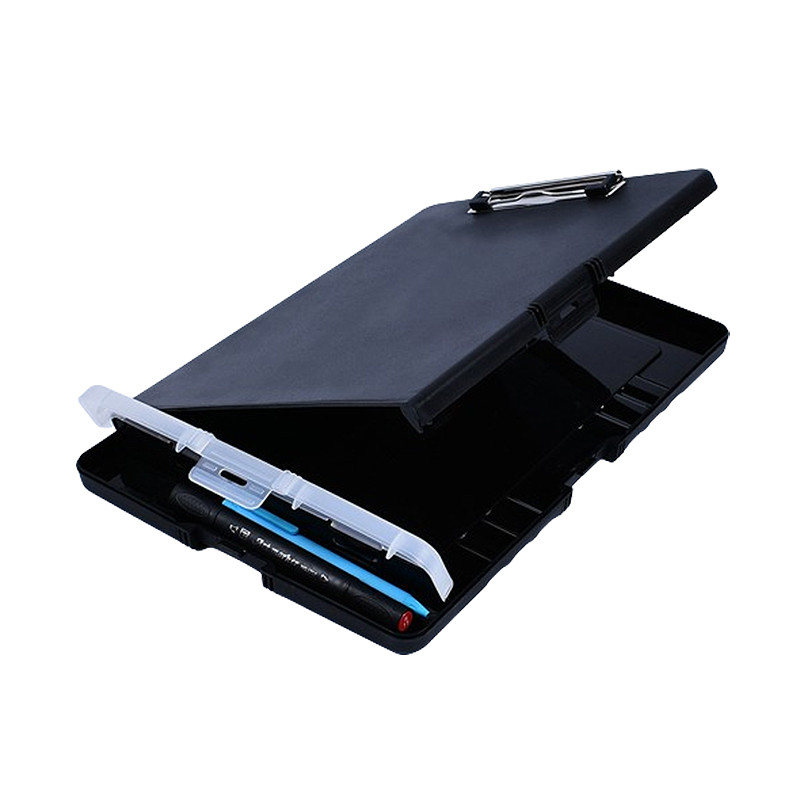 Plastic A4 Clipboard Folder with Storage and Separate Pen Holder - Black.