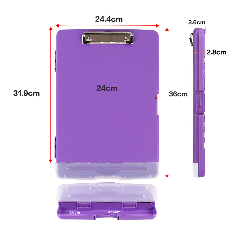 - Storage clipboard for papers and pens;