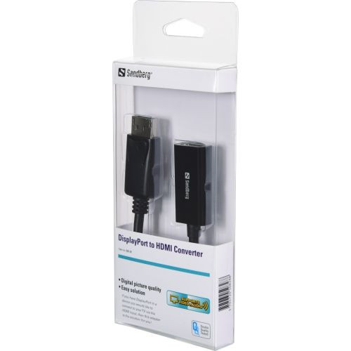 Sandberg DisplayPort Male to Female HDMI Converter Cable, Black, 5 Year Warranty