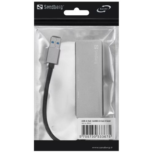 Sandberg External 4-Port USB-A Pocket Hub - USB-A Male, 1 x USB 3.0, 3 x USB 2.0, Aluminium, USB Powered, 5 Year Warranty