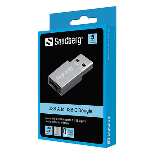 Sandberg USB 3.1 Gen1 Type-A Male to USB Type-C Female Converter Dongle, Aluminium