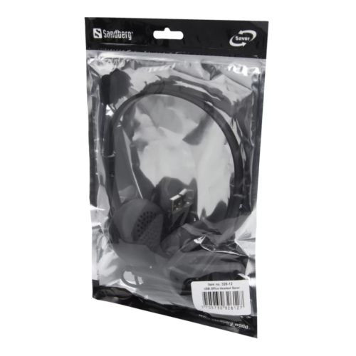 Sandberg USB Office Headset with Boom Mic, 30mm Drivers, In-Line Controls, 5 Year Warranty