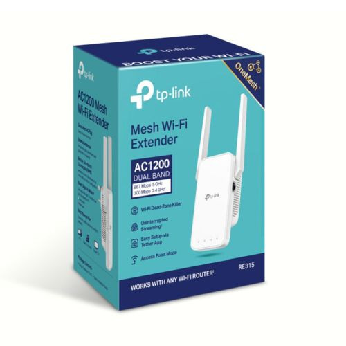 TP-LINK (RE315) AC1200 (300+867) Dual Band Wall-Plug Mesh Wi-Fi Range Extender, AP Mode, Smart Signal Indicator
