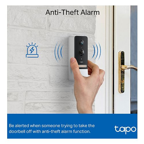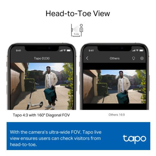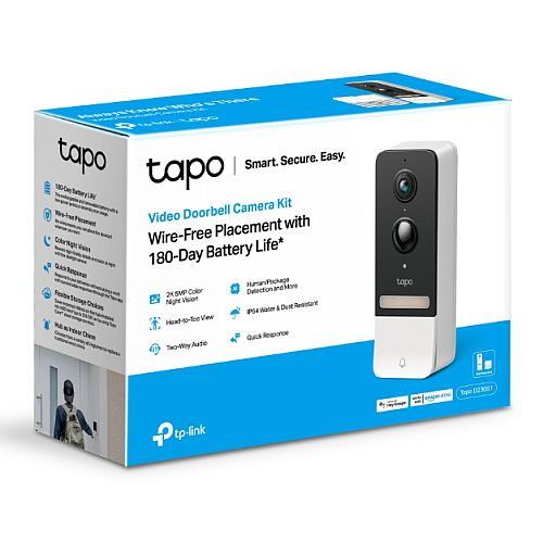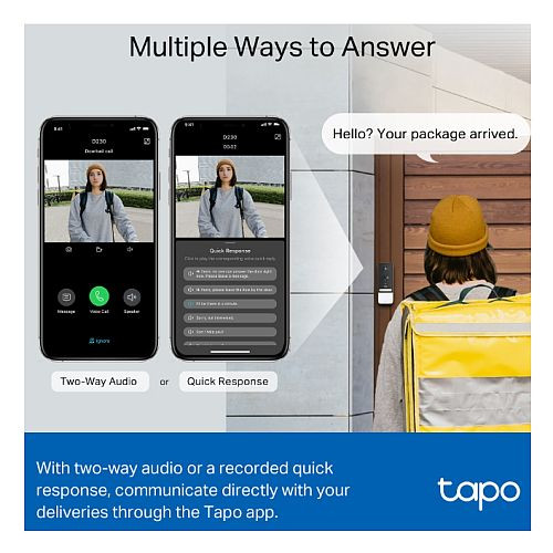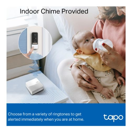 TP-LINK (TAPO D230S1) Smart Battery 2K 5MP Video Doorbell Kit w/ Hub, Night Vision, Ultra-Wide FOV, AI Detection & Notification,