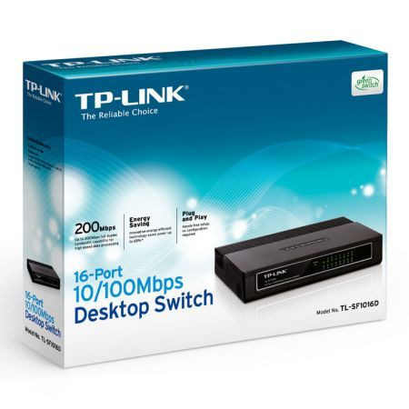 TP-LINK (TL-SF1016D) 16-Port 10/100Mbps Unmanaged Desktop Switch, Plastic Case