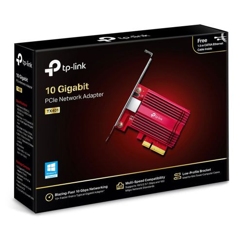 TP-LINK (TX401) 10GBase-T PCI Express Network Adapter, Backwards Compatible, CAT6A Cable, Low-Profile & Full-Height Brackets