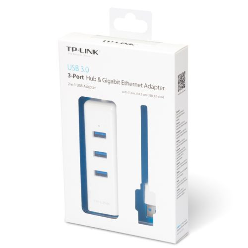 TP-LINK (UE330) Portable External 3-Port USB 3.0 Hub & Gigabit Ethernet Adapter, White