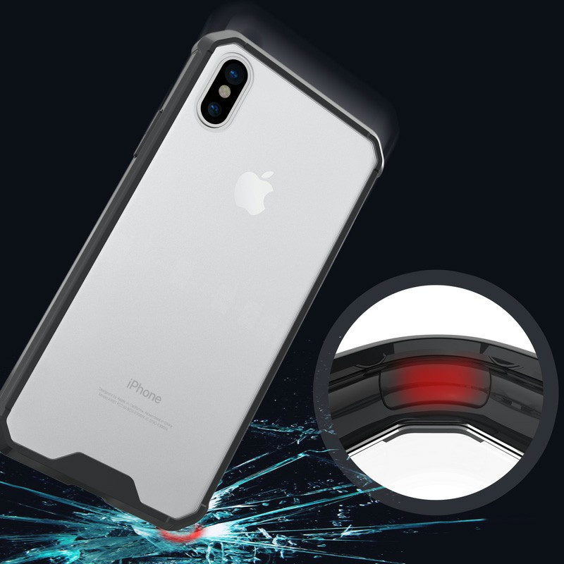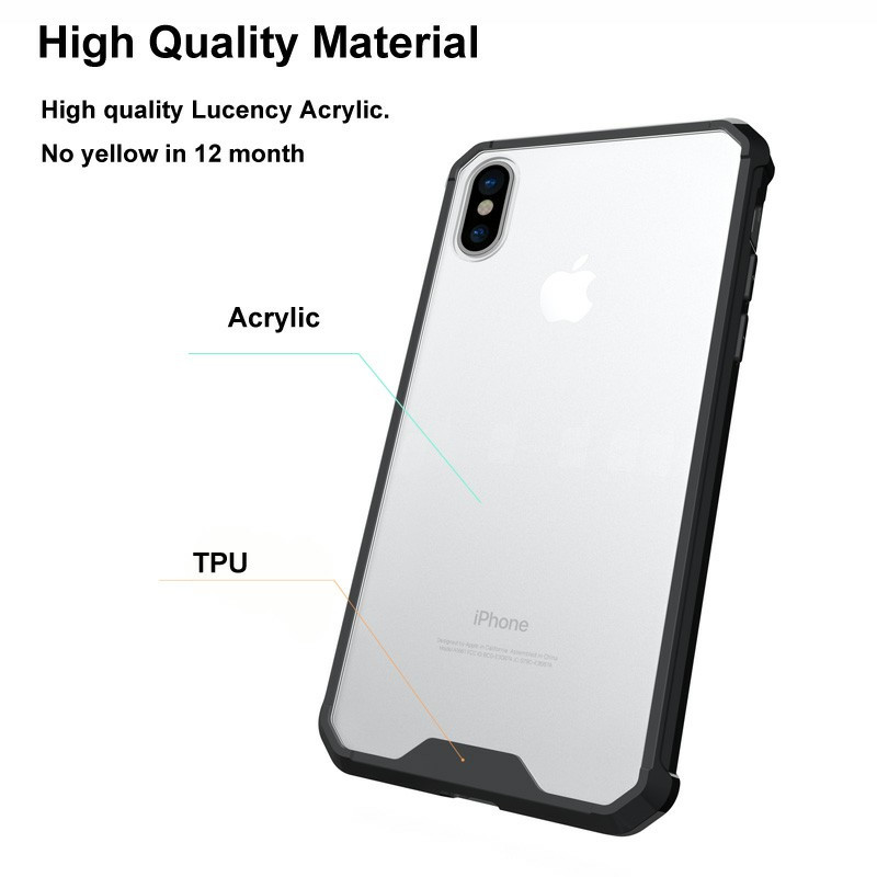 TPU Bumper Grip + Clear Hard Acrylic Phone Case Shell for iPhone X/XS - Transparent.