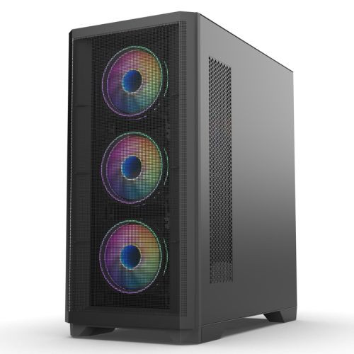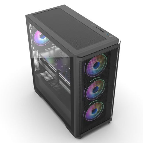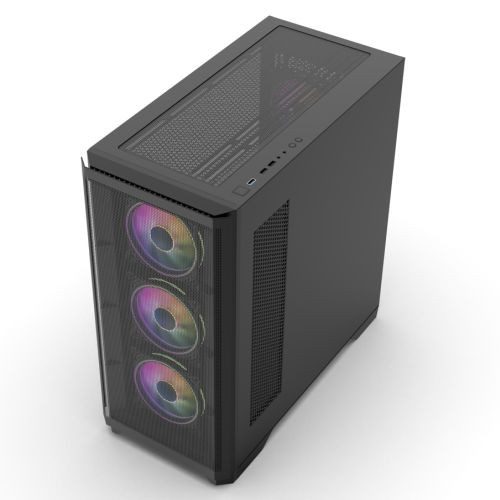 Vida Aquilon Black ARGB Gaming Case w/ Glass Window, E-ATX, 4x ARGB Fans, 6-Port PWM ARGB Fan Hub, Mesh Front