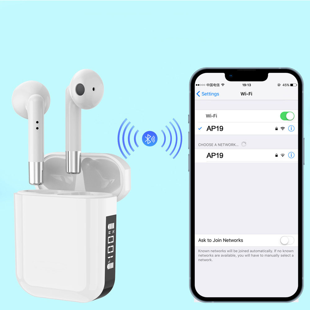 Wireless Bluetooth 5.3 In-Ear Earphones Battery LED Display for iPhone Samsung Android Phones - White