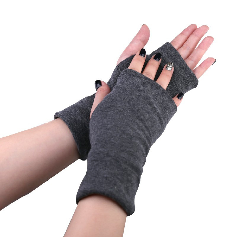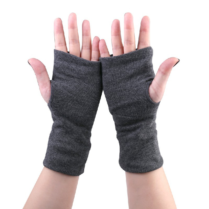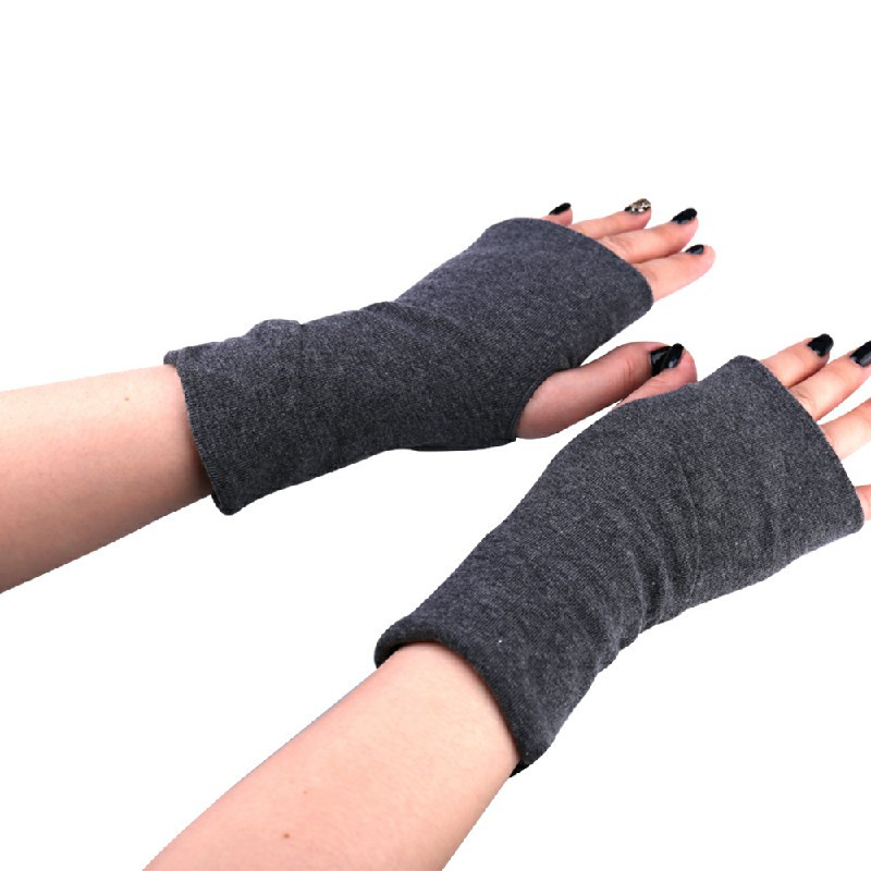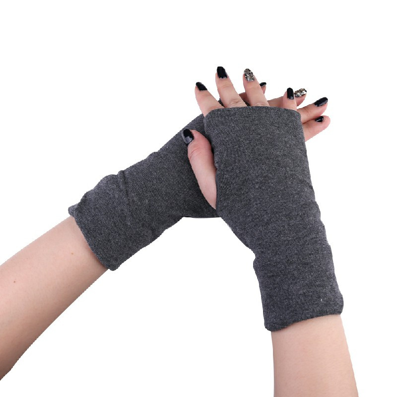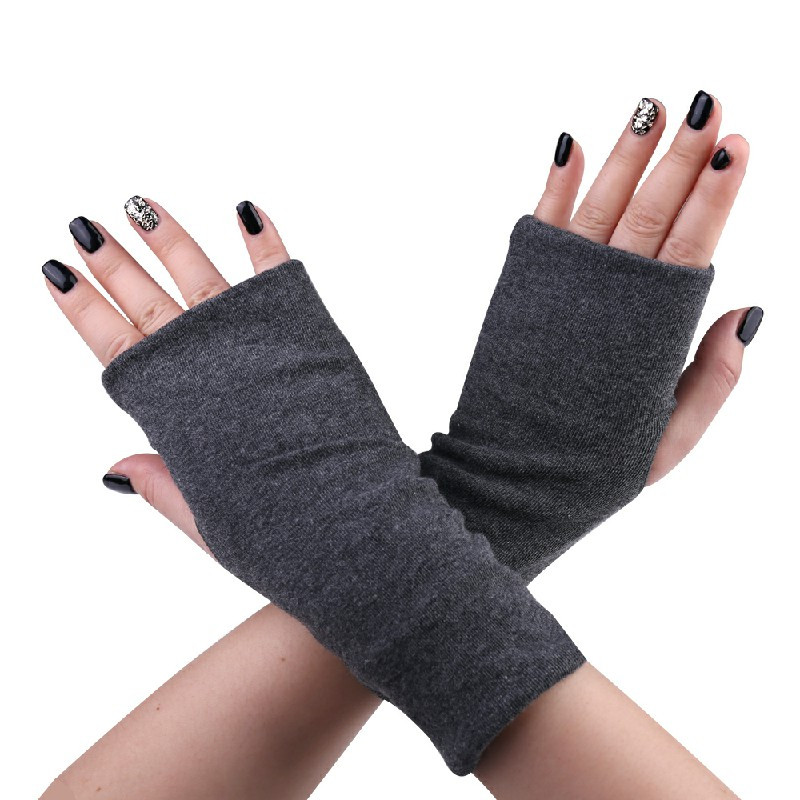 1 Pair Women Cotton Fingerless Arm Winter Gloves Hand Long Warmer Mittens - Grey