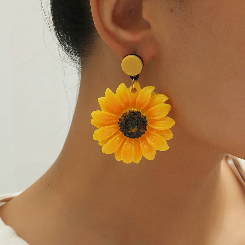 1 Pair Women Ear Stud Flower Pendant Exaggerated Dangle Drop Earrings.