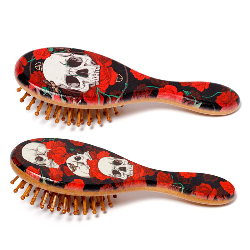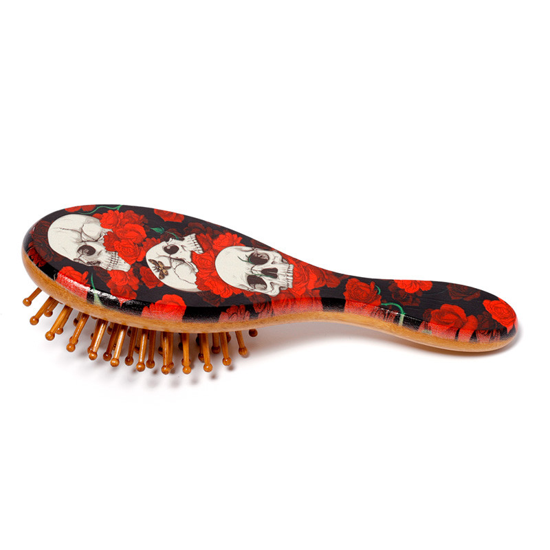 100% Bamboo Hair Brush - Skulls and Roses