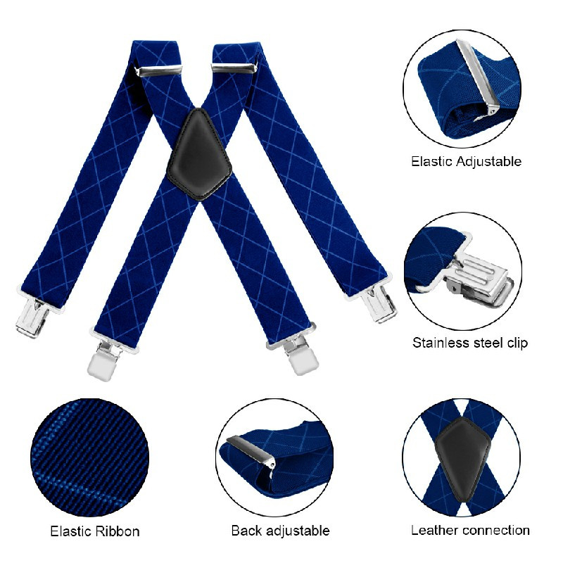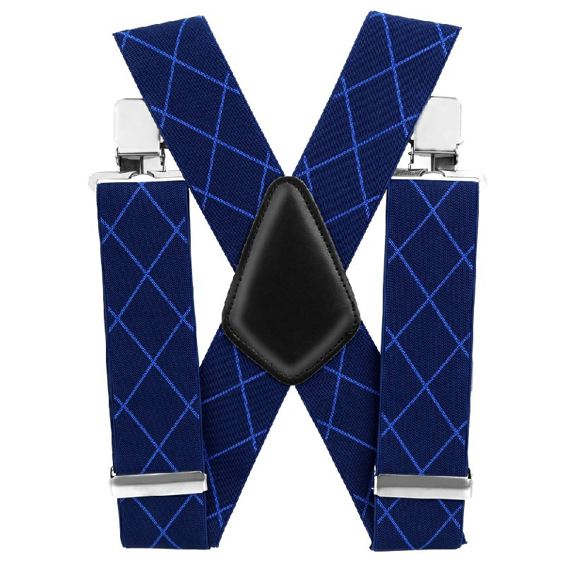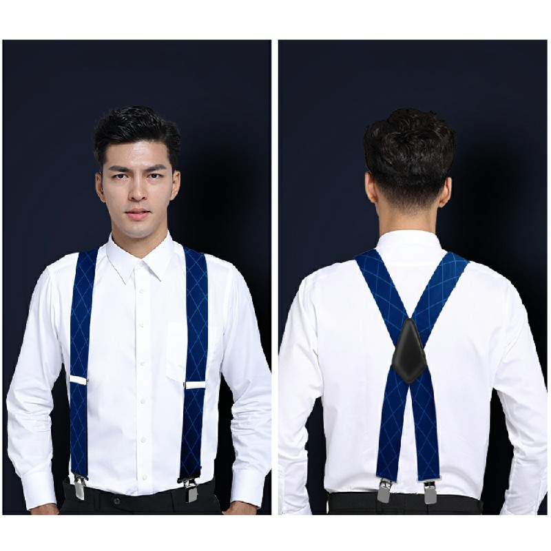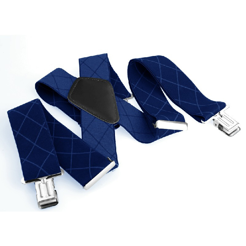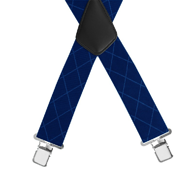 50mm Wide Diamond-shaped Dark Grain Trouser Braces Suspenders Adjustable Unisex Trousers Suspander - Blue