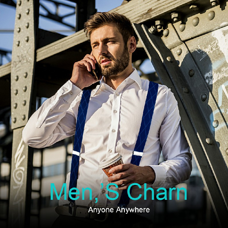50mm Wide Diamond-shaped Dark Grain Trouser Braces Suspenders Adjustable Unisex Trousers Suspander - Blue.