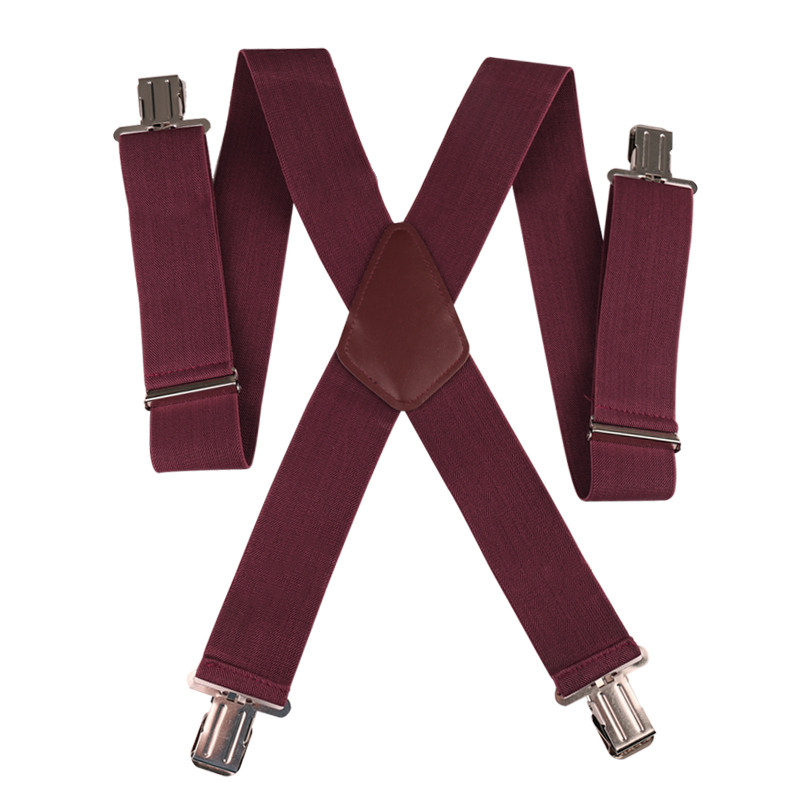 50MM Width Adjustable Elastic Men Suspenders - Wine Red.