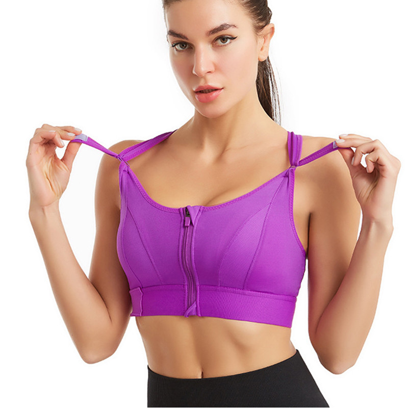 Back Closure Strappy Sports Bras Criss Cross Wireless Padded Workout Yoga Bra Tops - Purple 5XL