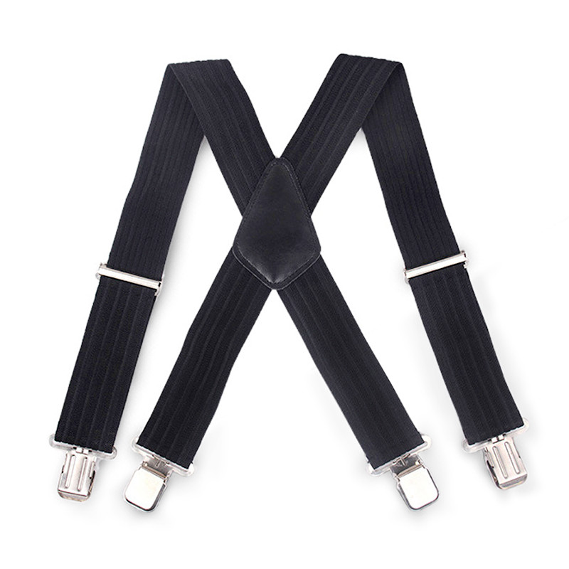 Black Stripes 50mm Wide Heavy Duty Suspenders Adjustable Unisex Trousers - Black.