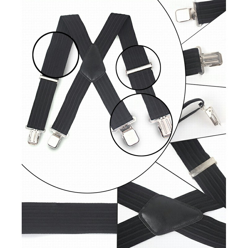 Black Stripes 50mm Wide Heavy Duty Suspenders Adjustable Unisex Trousers - Black