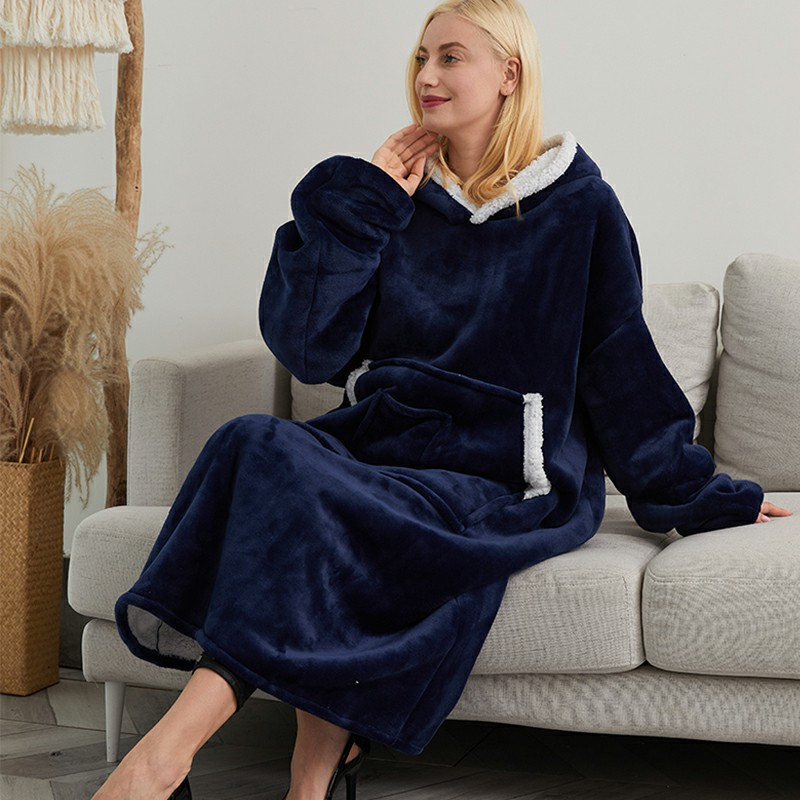 Blanket Hoodie Wearable Blanket Sweatshirt Oversized Warm Pullover - Navy Blue.