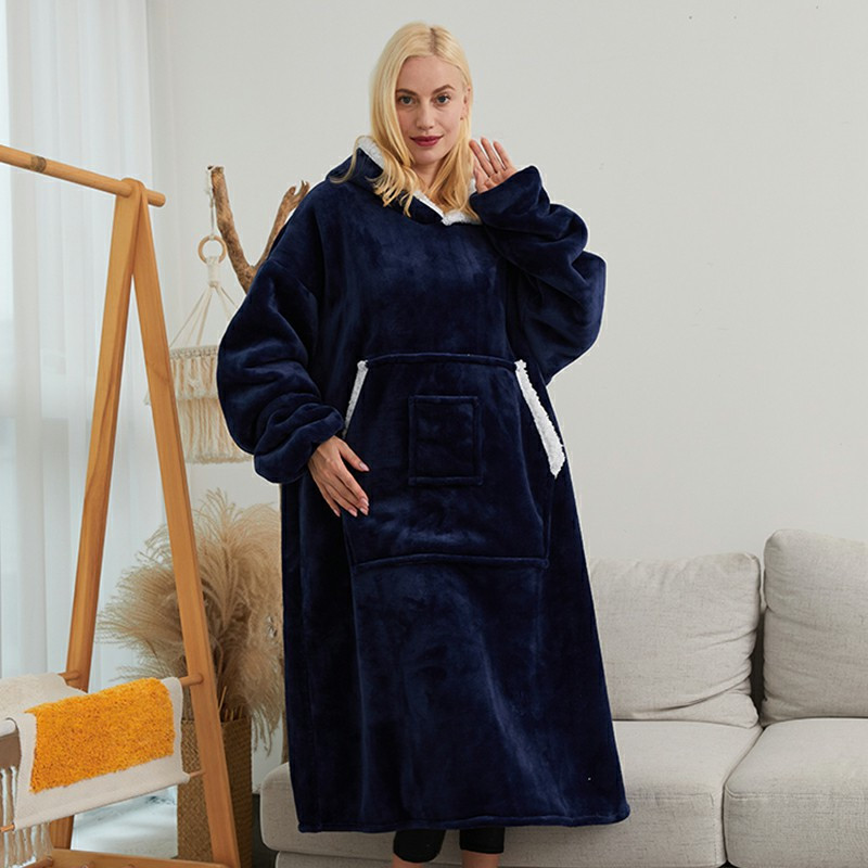 Blanket Hoodie Wearable Blanket Sweatshirt Oversized Warm Pullover - Navy Blue