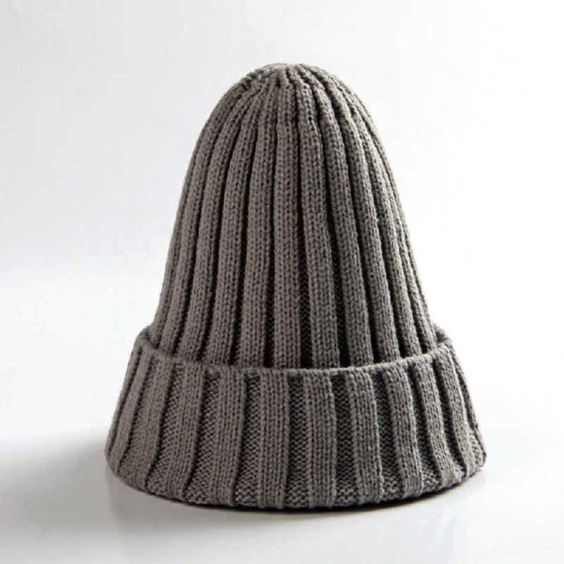 Chunky Ribbed Beanie Hat Plain Mens Womens Knitted Winter Knit Cap - Grey.
