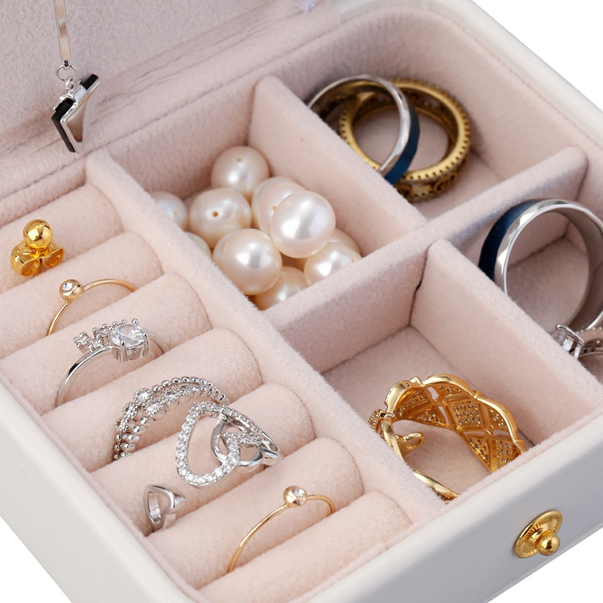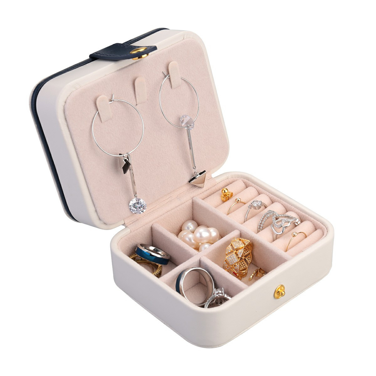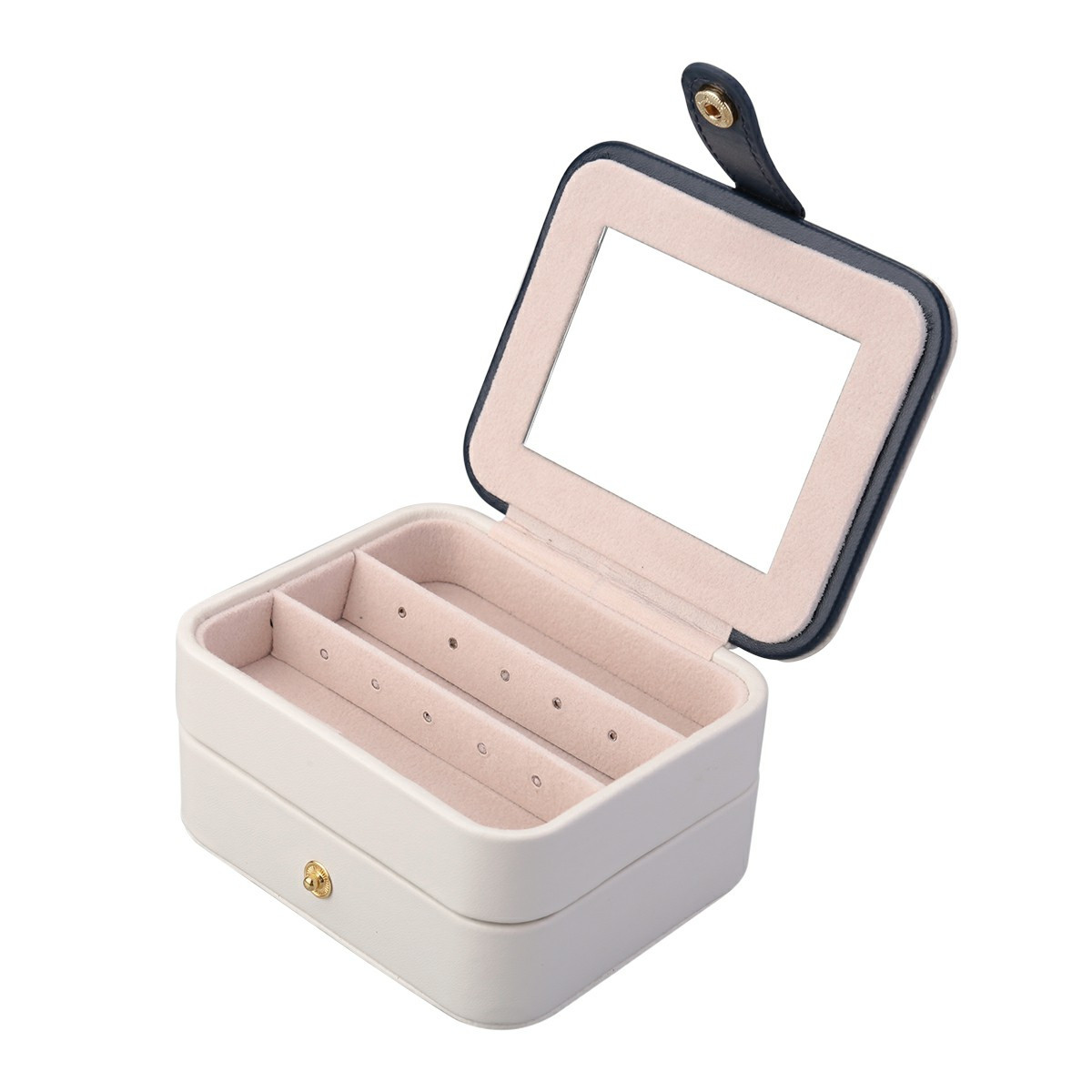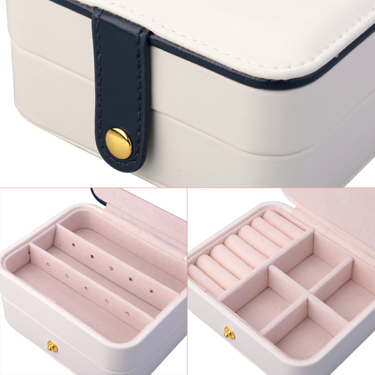 Creative Small Jewelry Box Multilayer Portable Travel Jewelry Box Leather Earrings Storage Box - White