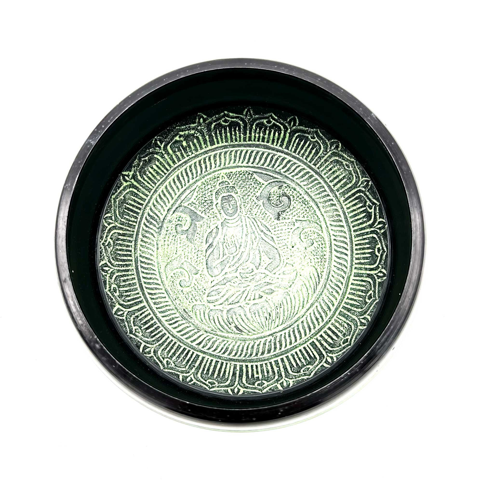 A symbol of spiritual harmony for your inventory. This handcrafted bowl, measuring 16cm, features the Mandala Buddha design, making it not just a musical instrument but also a conduit for profound spiritual serenity.