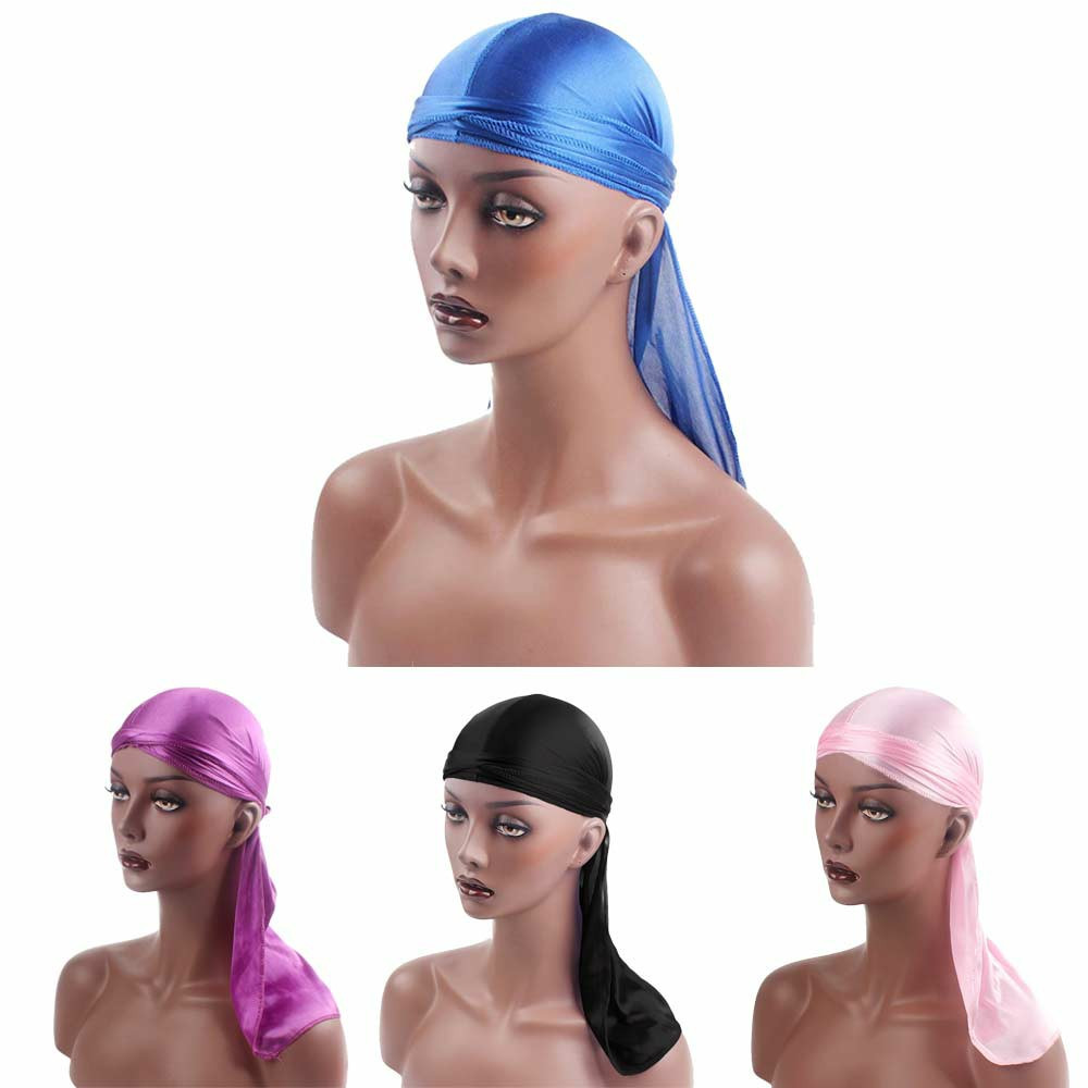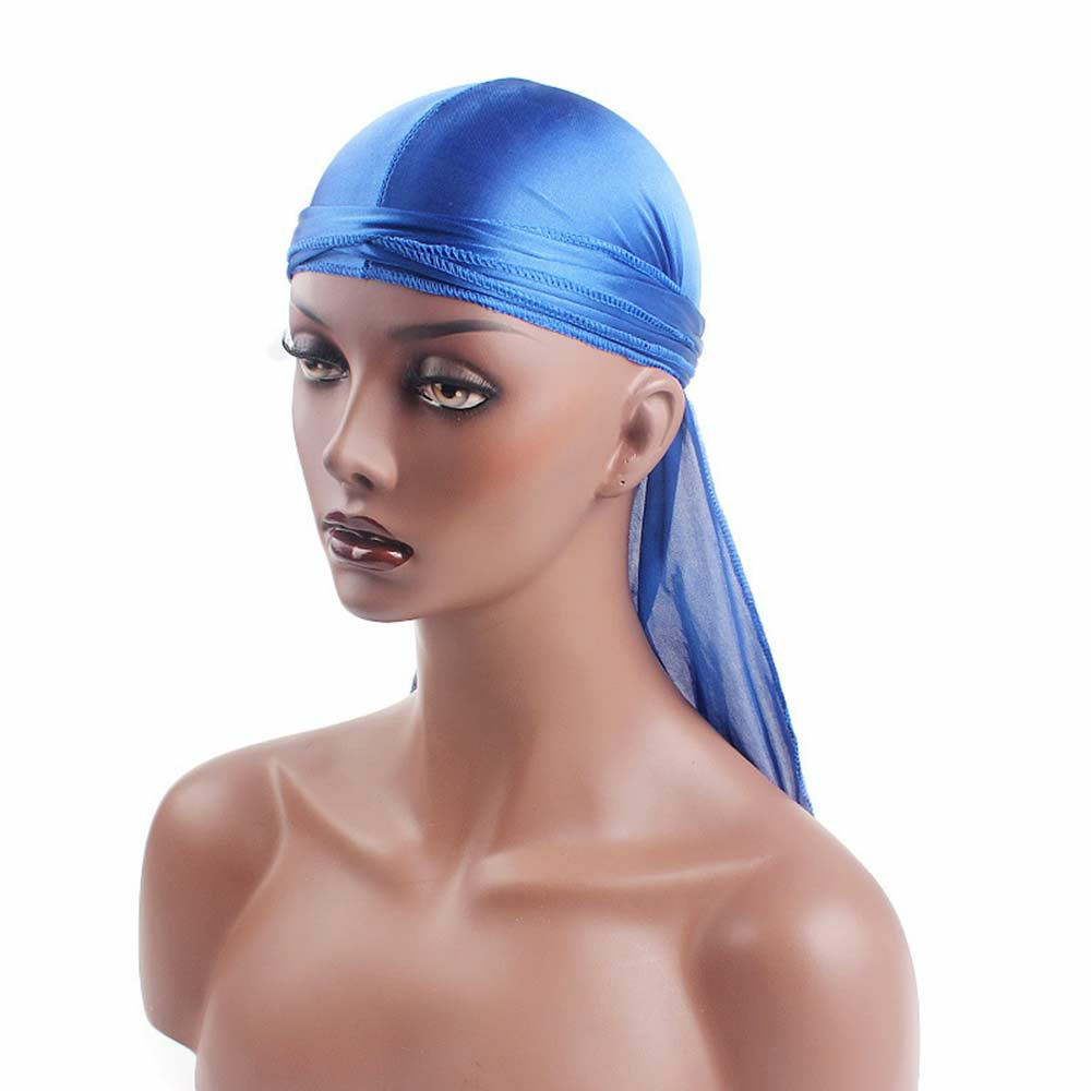 Fashion Unisex Men and Women Headscarf Headdress Bandana Durag Headwear Faux Soft Silk Pirate Cap Wrap - Blue.