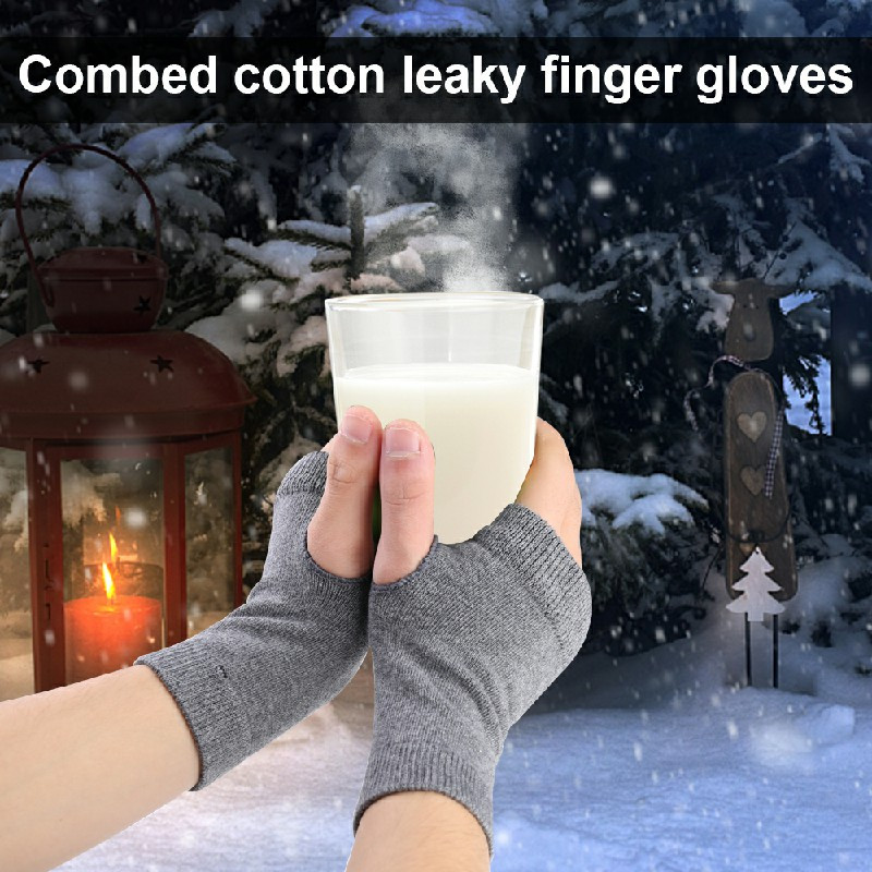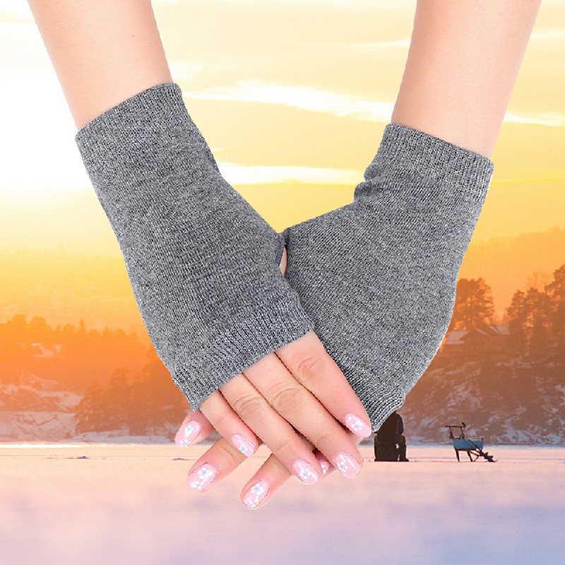 Fingerless Arm Warm Winter Gloves Hand Long Warmer Mittens for Women Men - Grey