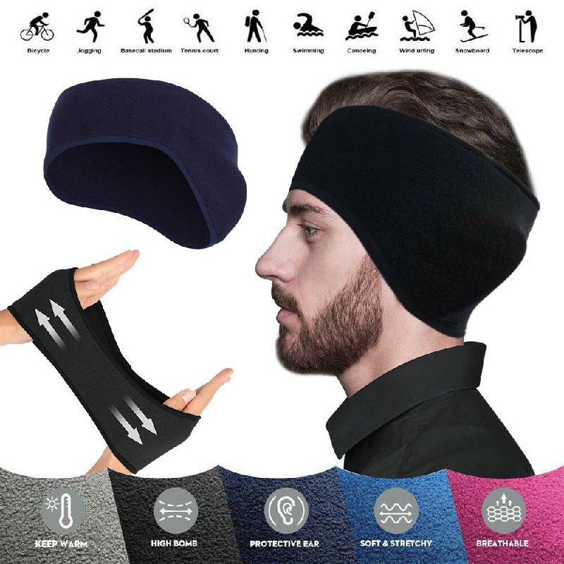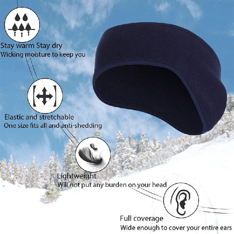 Fleece Ear Cover Ear Warmer Headband Winter Sweatband Running Headband - Navy.