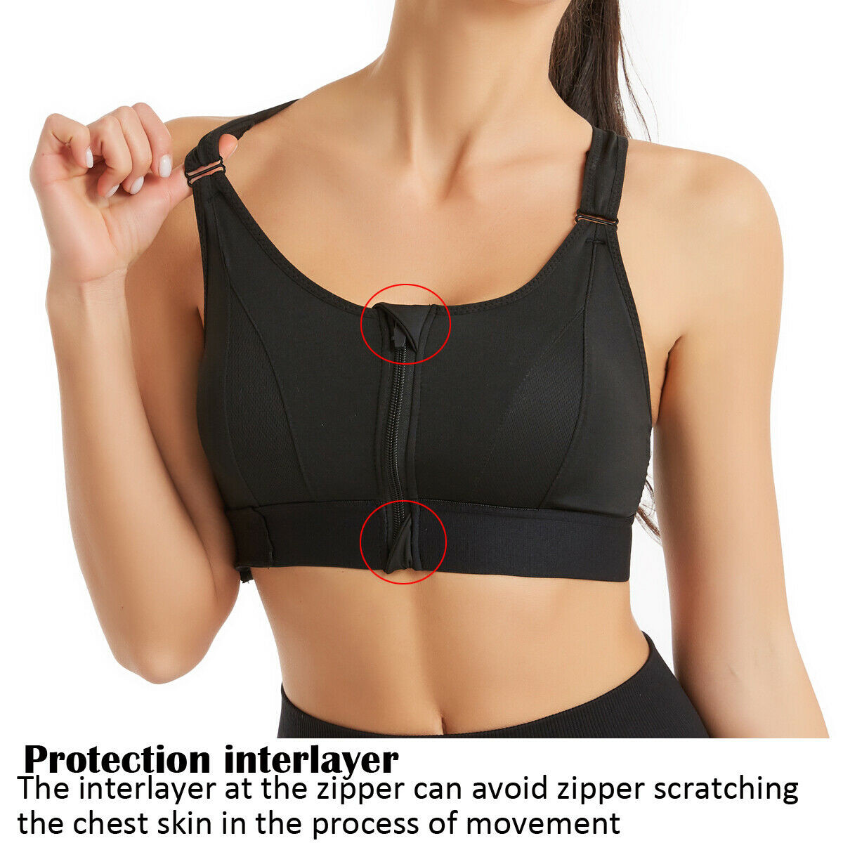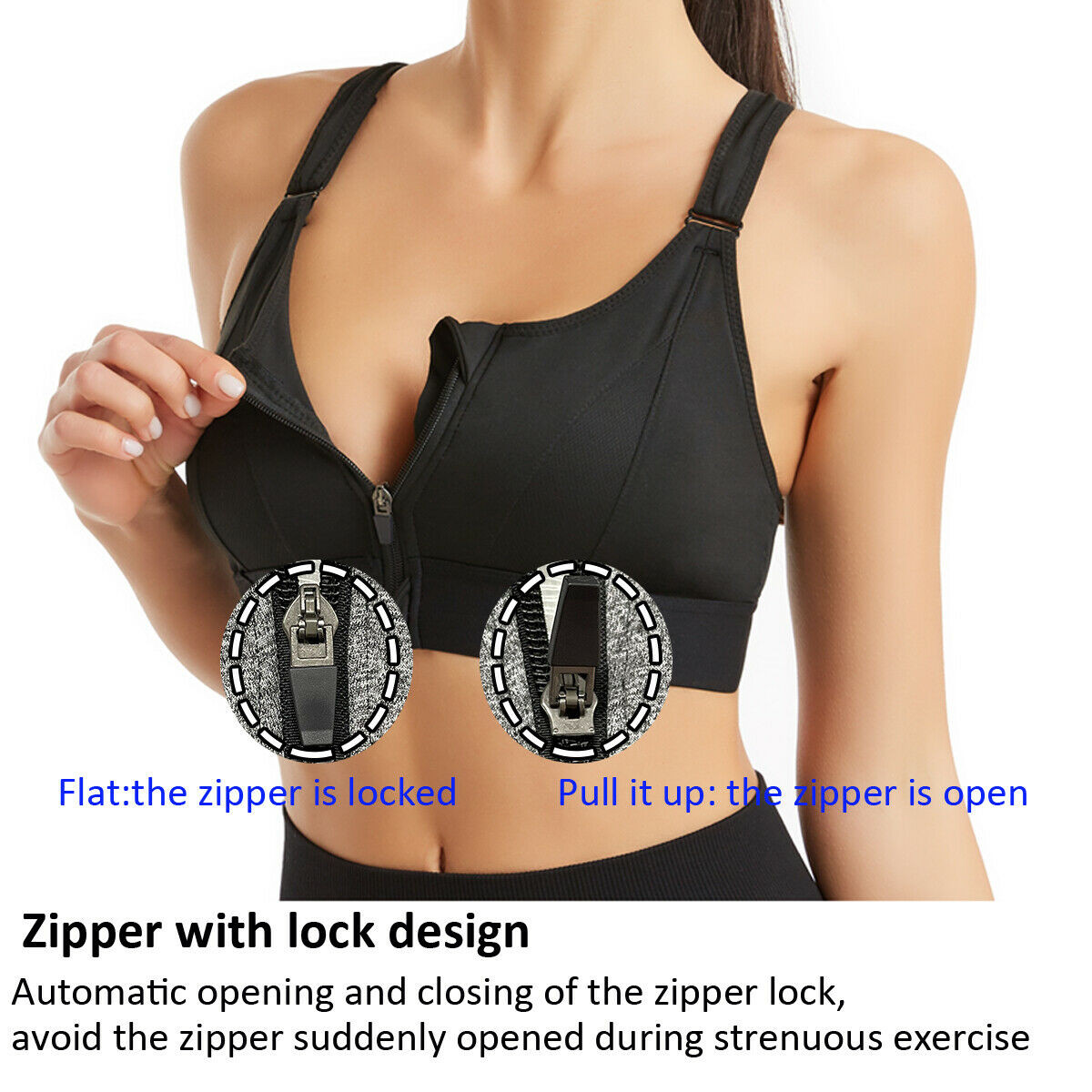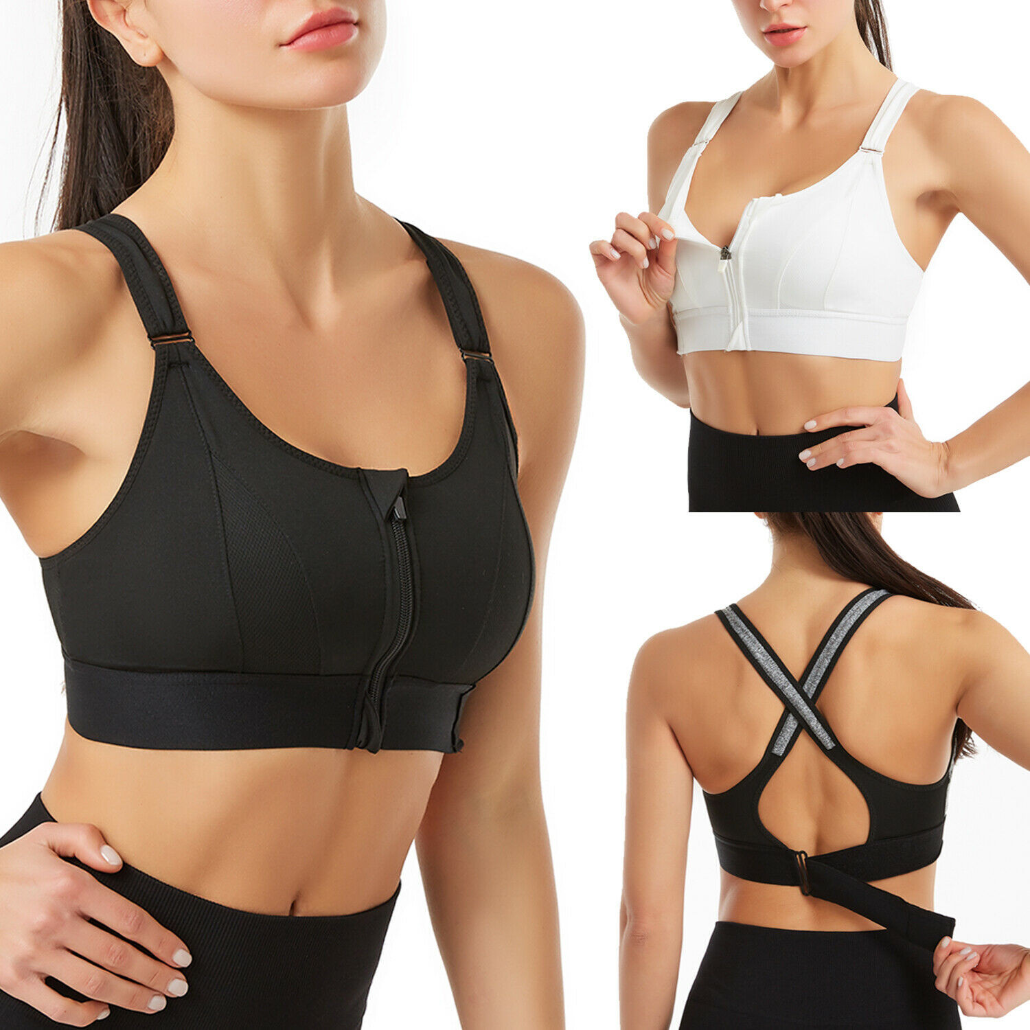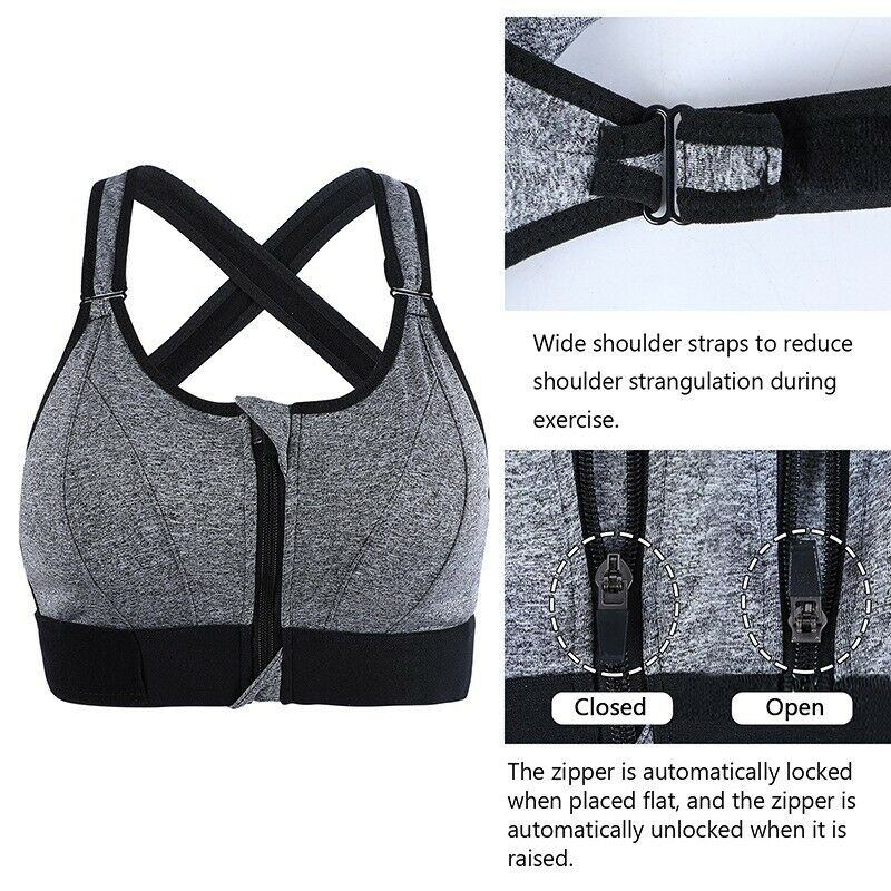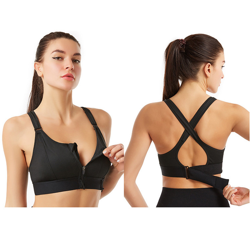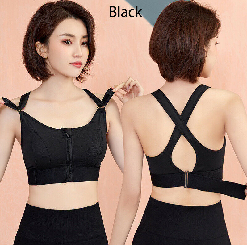 Front Zipper Sports Bras Workout Yoga Shock Proof Bra Tops - Black 4XL.