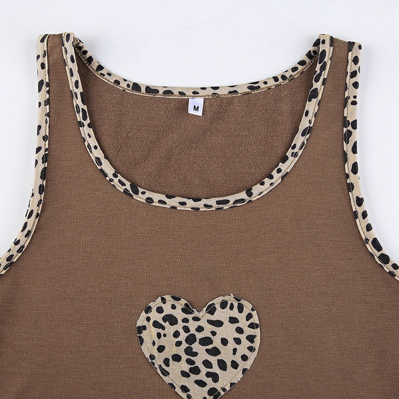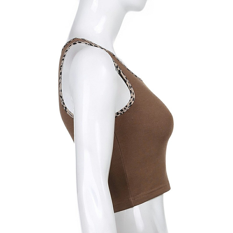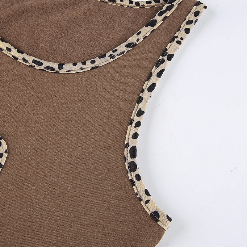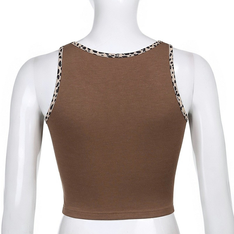 Girls Leopard Print Round Neck Rib Knit Crop Tank Top Sleeveless Slim Fit Top.