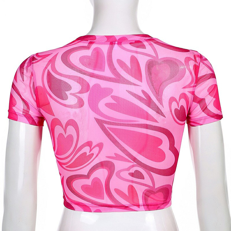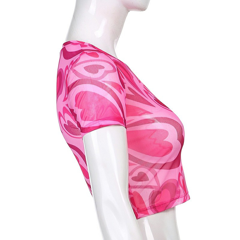 Girl's Love Heart Printed Basic Short Sleeve Scoop Neck Crop Top - Purple L.
