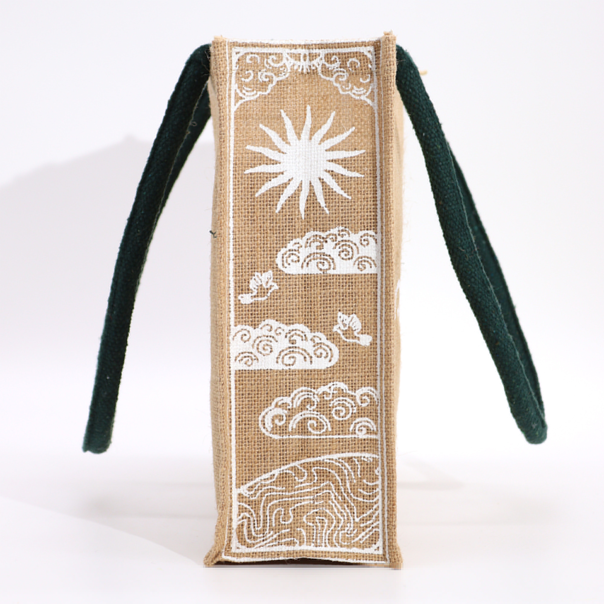 With a delightful sun design, this jute bag embodies optimism and cheerfulness.