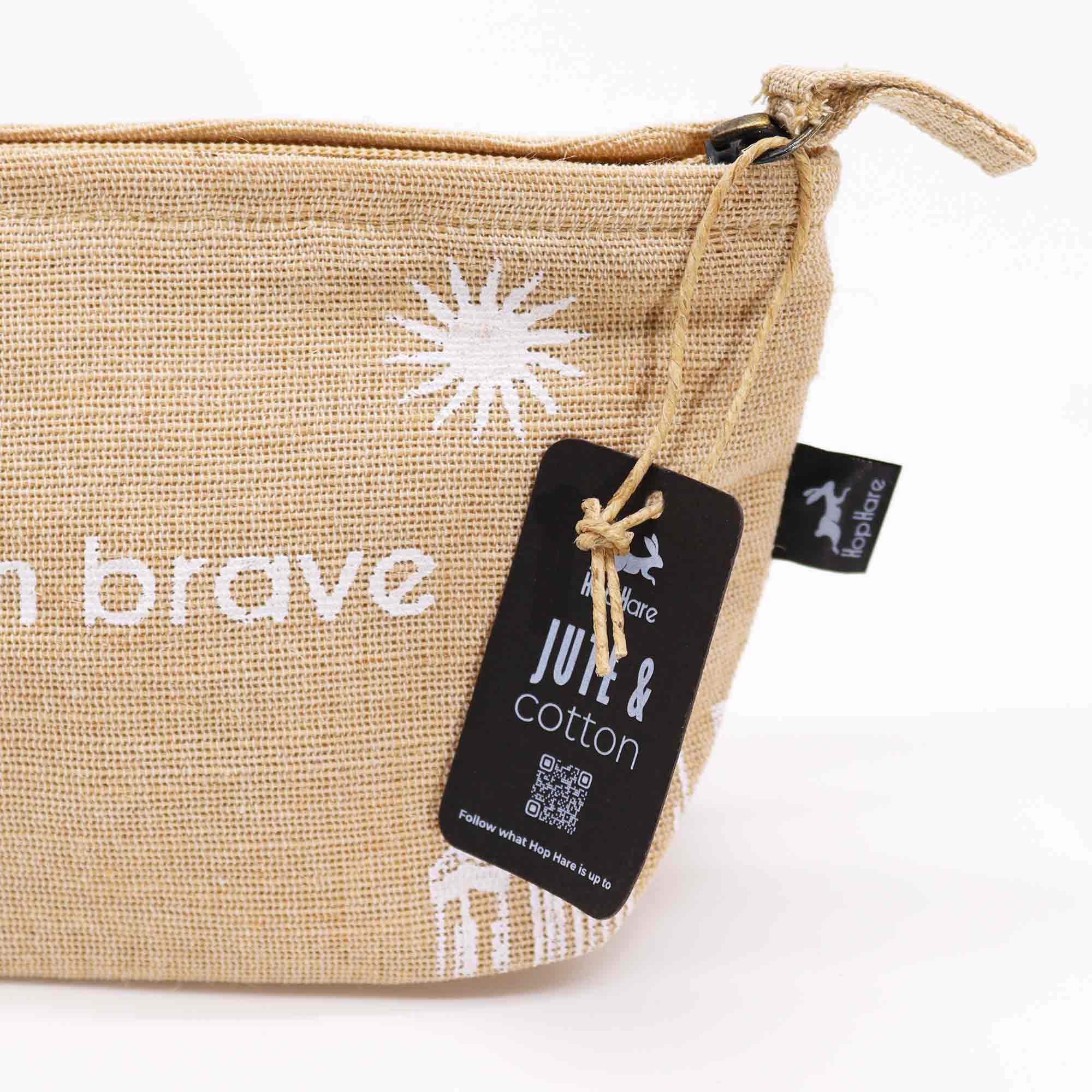 Infuse your gift collection with a touch of empowerment and earthy elegance with the Hop Hare Pouch. This one-of-a-kind pouch is handcrafted from natural jute fibres, boasting a rustic charm that complements any style. Beyond its beautiful aesthetic, the "I am Brave" affirmation serves as a constant source of inspiration, reminding its owner of their inner courage and strength.