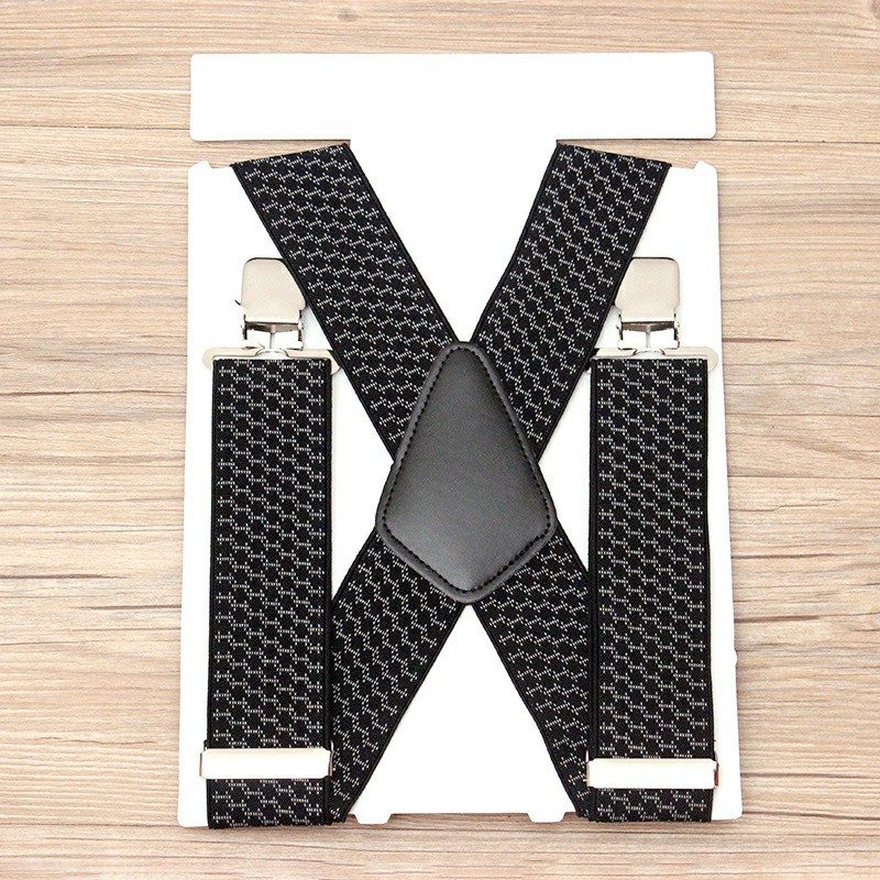 Jacquard 50mm Wide Heavy Duty Suspenders Adjustable Unisex Trousers - Black.
