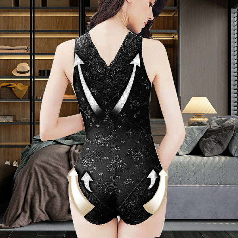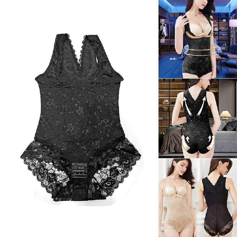 Lace Slimmer Bodysuit Seamless Body Shaper Open Bust Shapewear for Women - Black L.