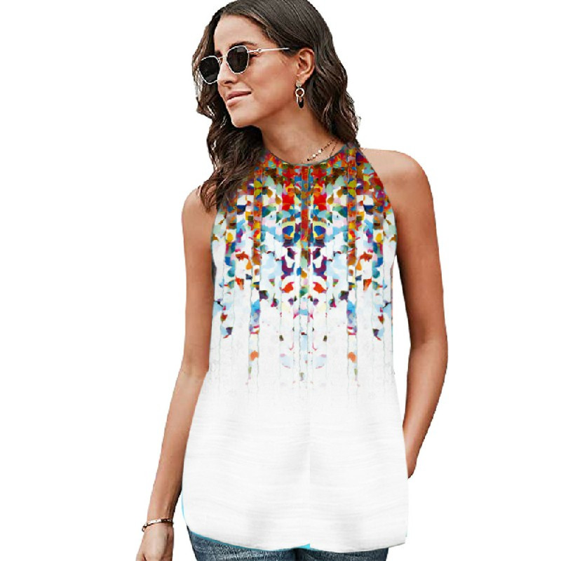 Ladies Beach Vest Top Flowy Tank Top Boho Sleeveless Top Camisole Pleated T Shirts - 3XL.